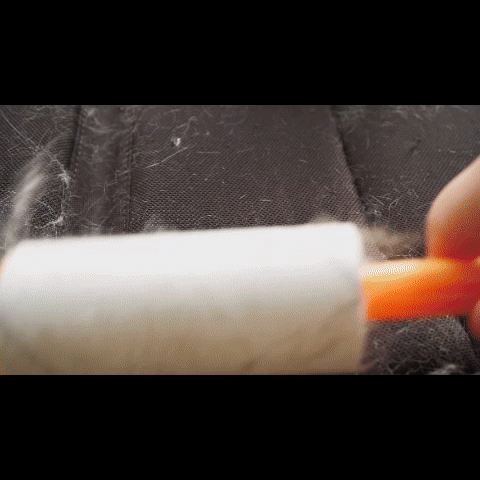 2. Fusseln entfernen: Mit leichtem Druck über Kleidung, Möbel oder Autositz rollen. Fusseln, Haare und Krümel verschwinden wie von selbst.