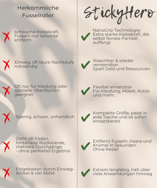 Der StickyHero ist bei unseren Kund:innen heiß begehrt. Kein Wunder, denn er macht Schluss mit Fusselstress! Warte nicht zu lange, bevor er wieder ausverkauft ist.